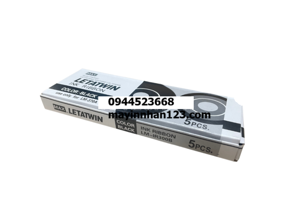 Mực in LM IR300B (12mm, 50m/cái) sử dụng để in lên ống lồng đầu cốt, in trên băng nhãn in. Cuộn mực LM-IR300B có lõi màu xanh lá, phần lõi nhựa có chữ chìm MAX CO.,LTD. và phần nhựa ở đầu thu có Logo MAX.